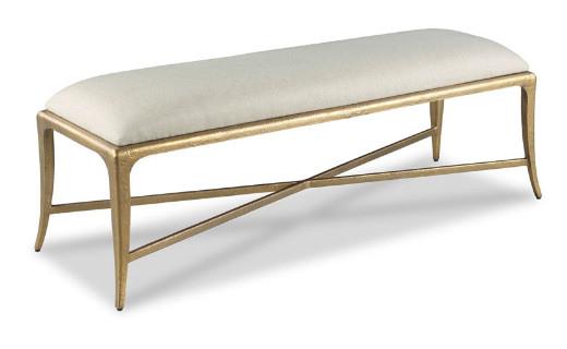 Description: Gatsby Bench, 86 Textured Gold Finish, Stainless Steel frame with wood seat board attached