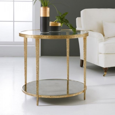 Description: SMALL SCULPTURE RD TABLE - ANTIQUE BRASS